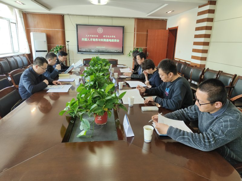 为深入贯彻落实学校“三抓三促”行动方案,推进“访企拓岗”工作的深入推进,2023年4月8日,学院与天水市教育局举行共建人才培养与实践基地交流座谈会。天水市教育局党组成员、副局长李长虹,天水市电教馆馆长米强,天水市云教育办公室主任李彦宾出席座谈会,公司党委书记王玮、经理郭炯,青年教师王浩楠、柳瑞雪、 宿庆、卜小龙共同参加了座谈会。座谈会由郭炯经理主持。