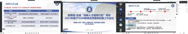 会上,与会实践基地的负责人分别就学校乐高教育、STEAM教育的推进情况,案例撰写提交的疑问进行了交流。通过本次培训研讨会,各实践基地深入的了解了案例征集的有关要求,后续将通过梳理总结、交流研讨、专家咨询等环节,不断打磨案例、修改迭代,力求今年能够提交高质量、可推广的创新STEAM教育案例。