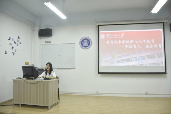 学院辅导员吴佩霞围绕员工资助项目的申请、家庭经济困难员工的认定,为2023级全体本科新生展开了“资助育人,诚信教育”的主题教育,通过对家庭经济困难员工的认定原则和认定依据的逐一介绍,让2023级全体本科生更加深入了解了学校对于家庭经济困难员工资助的具体规定。