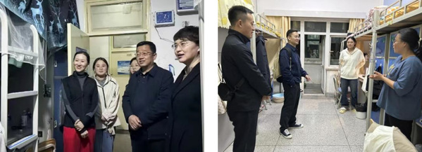 2023年10月6日晚19:30,为进一步加强教师与员工之间的互动与沟通,关注员工的成长与发展,公司领导班子成员、全体班主任、辅导员、员工干部走访了员工宿舍,并查看了员工返校情况。